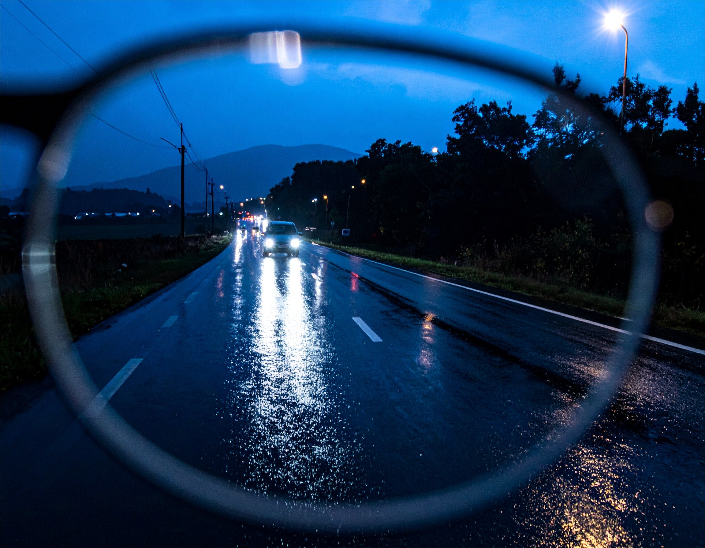 LEDヘッドライトの鋭いグレア(まぶしさ)、雨夜の白線や歩行者の見えにくさ。夜間運転の負担は、度数だけを整えても解決しないことがあります。72eyeworksでは、反射を抑えるコーティングとコントラストを底上げする設計、そしてフィッティングを組み合わせ、夜の視界を総合的に最適化します。