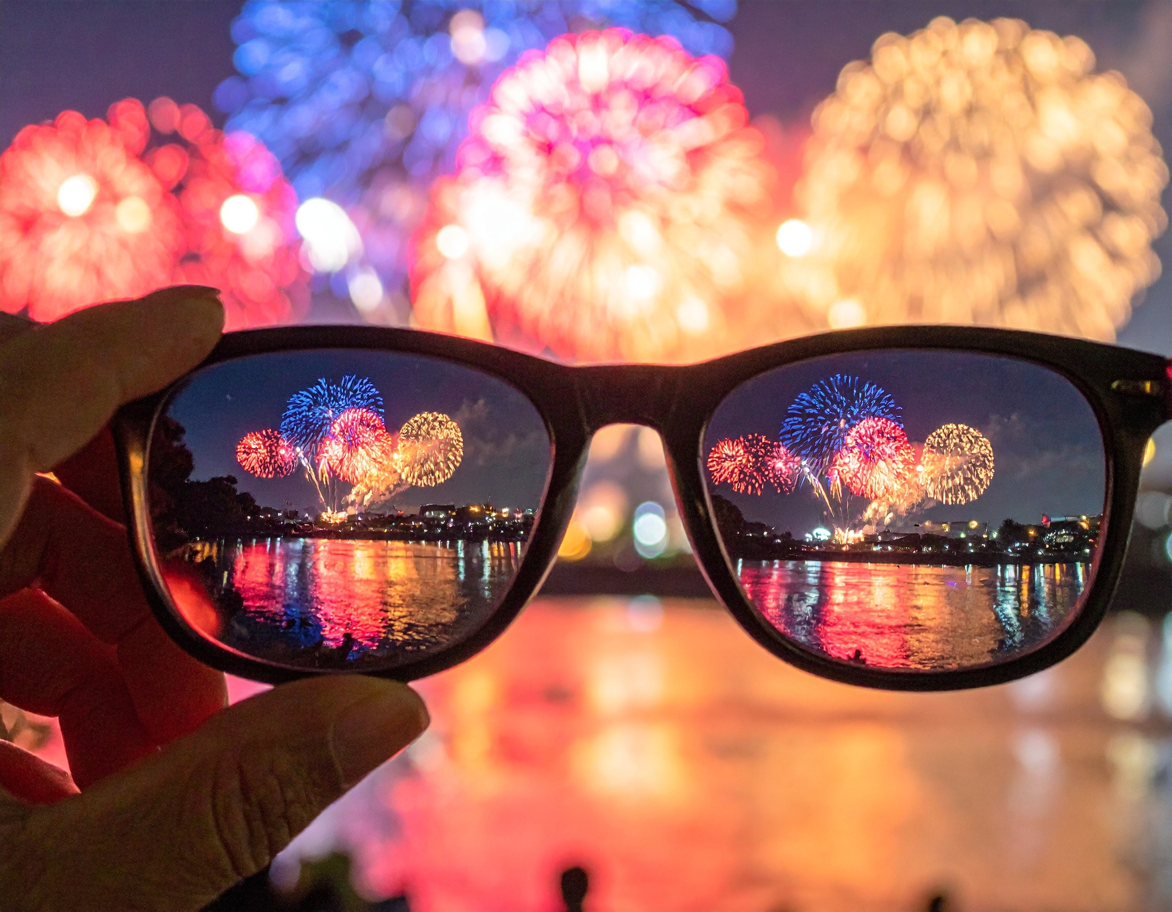 メガネを通して見る花火は、裸眼の記憶とは少し違う“くっきりとした美しさ”を感じさせてくれます。