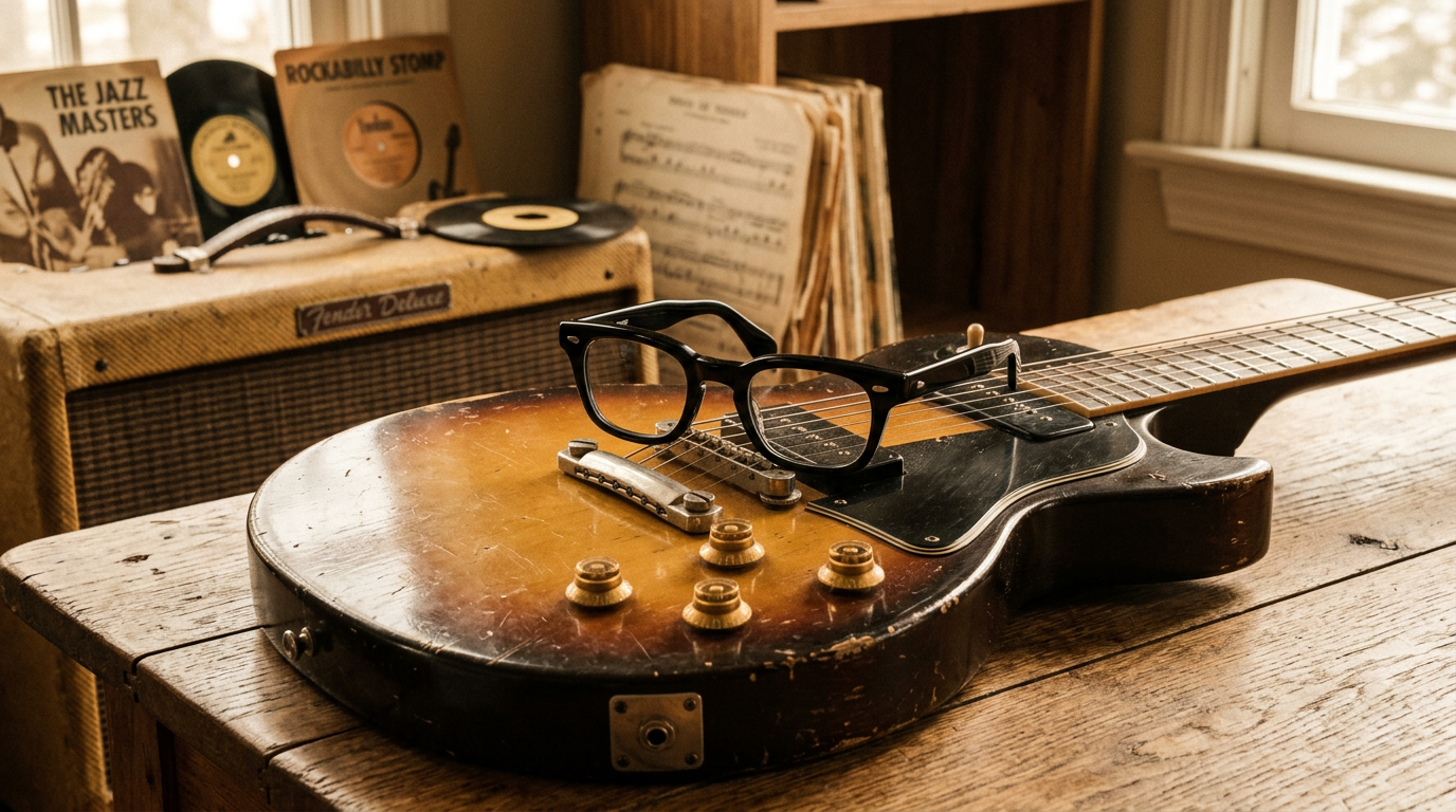 - 受け継がれる50'sスタイル: 現代でも黒縁メガネがファッションの定番なのは、彼のギターサウンドと共に刻まれたこのスタイルがあったからこそ。